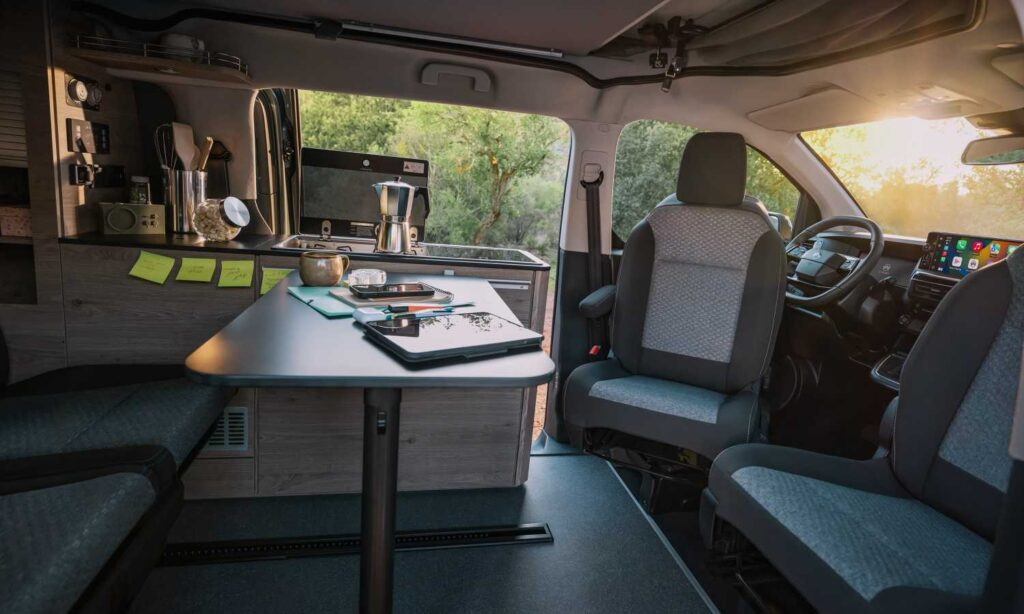 Sin duda, lo mejor de estos vehículos viene de puertas para adentro. Y es que en el salón dispone de dos camas de 1,90 (una superior adaptable cuando abrimos el techo), mesa retráctil, cocina, fregadero, dos placas de gas, frigorífico de 16 litros… en fin, absolutamente todo lo necesario para pasar unos días de ocio conociendo rincones nuevos solo o en compañía.
