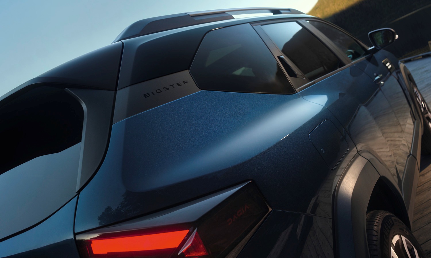 El Bigster recurre a formas geométricas limpias y proporciones robustas, con aletas marcadas y grupos ópticos llevados a los extremos para aumentar la presencia visual; su estética recuerda al concept prototipo presentado anteriormente. Rechaza el negro piano omnipresente y combina superficies mates y satinadas que resisten mejor el uso diario. En los acabados más altos puede llevar techo bitono en negro por primera vez en Dacia.