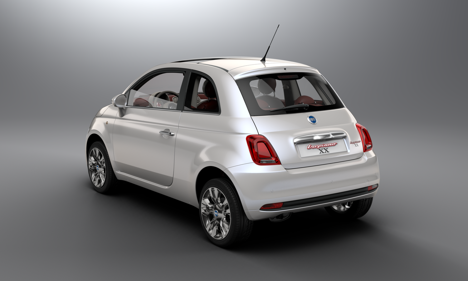 Este logo fue creado para celebrar el 100 aniversario de Fiat y estuvo en sus modelos más de una década. Completa el exterior unas llantas de cinco radios con un tapacubos exclusivo. En el interior luce los tonos marrón rojizo junto al blanco del concept que se extienden por salpicadero, puertas y asientos. En estos están los logos «Trepiuno XX» y el salpicadero se cubre con los bocetos originales del Trepiuno que realizó Giolito para su diseño.