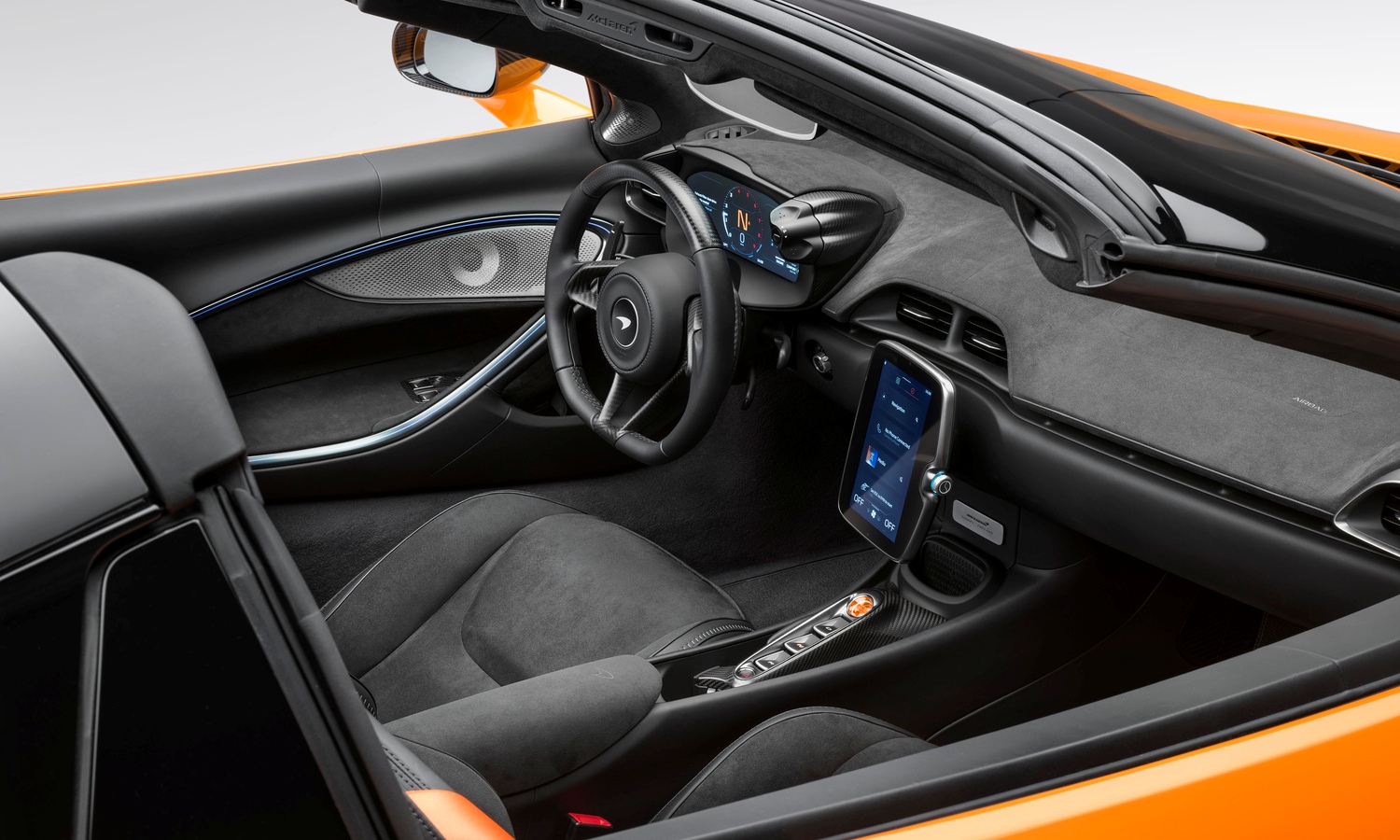 Con todo, lo más interesante del McLaren Artura Spider está bajo su piel. Es un superdeportivo híbrido que se presenta con 690 CV de potencia y 720 Nm de par. Para darle vida la marca recurre al tren híbrido M630 de 3.0 litros y configuración V6 con doble turbocompresor gestionado por una transmisión de 8 relaciones. Según dice la marca las transiciones entre marchas son un 25% más rápidas que antes enviando la fuerza al eje trasero.