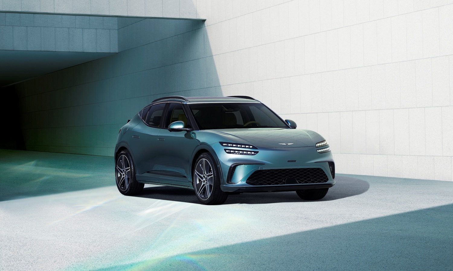 El renovado look del Genesis GV60 2025 destaca por sus líneas dinámicas y detalles que le confieren un carácter premium. Una de las principales novedades es la parrilla frontal rediseñada y de tamaño más compacto que se acompaña de un parachoques delantero de corte más deportivo. Estos cambios otorgan al coche una presencia imponente en carretera.