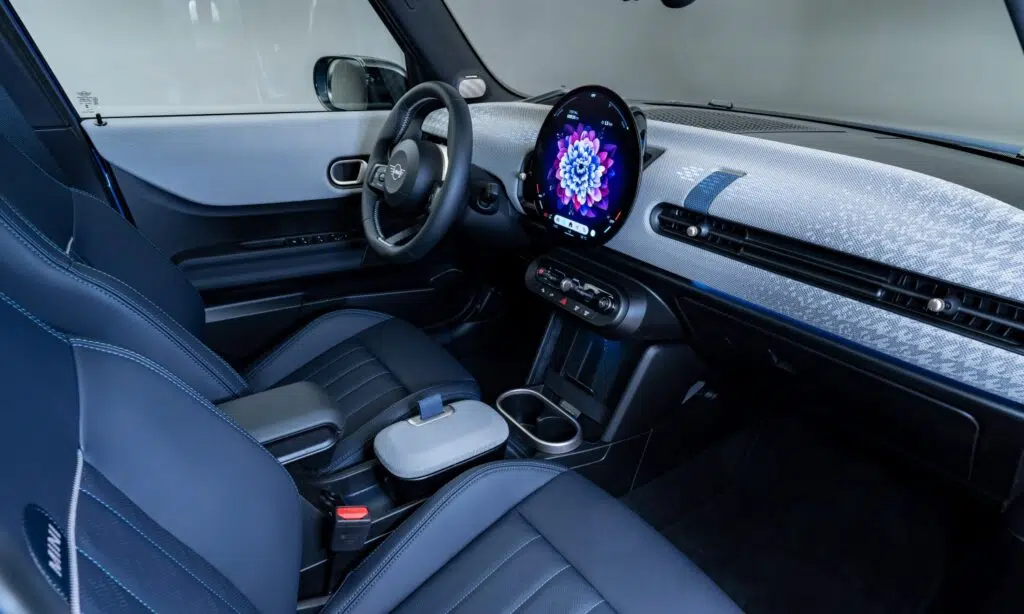 Al igual que hereda todos los rasgos externos y las opciones de personalización que hay disponibles en el nuevo Mini Cooper pequeño, también adopta la tecnología que se hace patente tanto en aspectos de seguridad como en cuestiones de infoentretenimiento. Una vez dentro, es especialmente protagonista la nueva pantalla OLED con sistema operativo Mini 9 y con la friolera de 240 milímetros de diámetro.