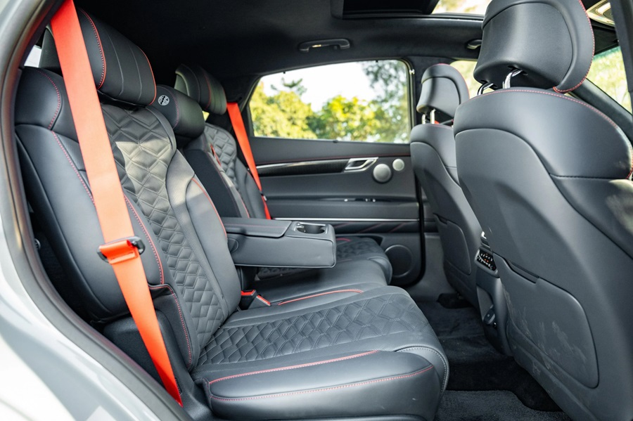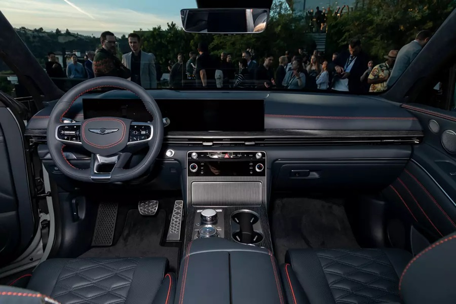 El GV80 Coupé brilla por su comodidad. Sus superficies interiores están revestidas con una elegante mezcla de cuero, madera, metal, fibra de carbono y microsuede y la iluminación ambiental ajustable que hacen para una sensación de lujo, independientemente del precio muy competitivo de este auto.